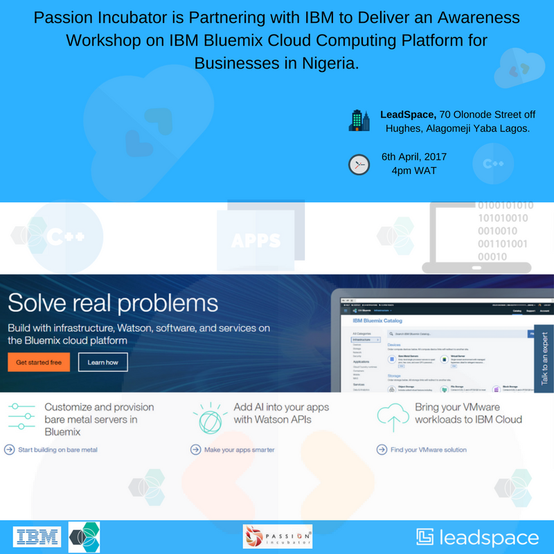 Passion Incubator is Partnering with IBM to Deliver an Awareness Workshop on IBM Bluemix Cloud Computing Platform for Businesses in Nigeria.