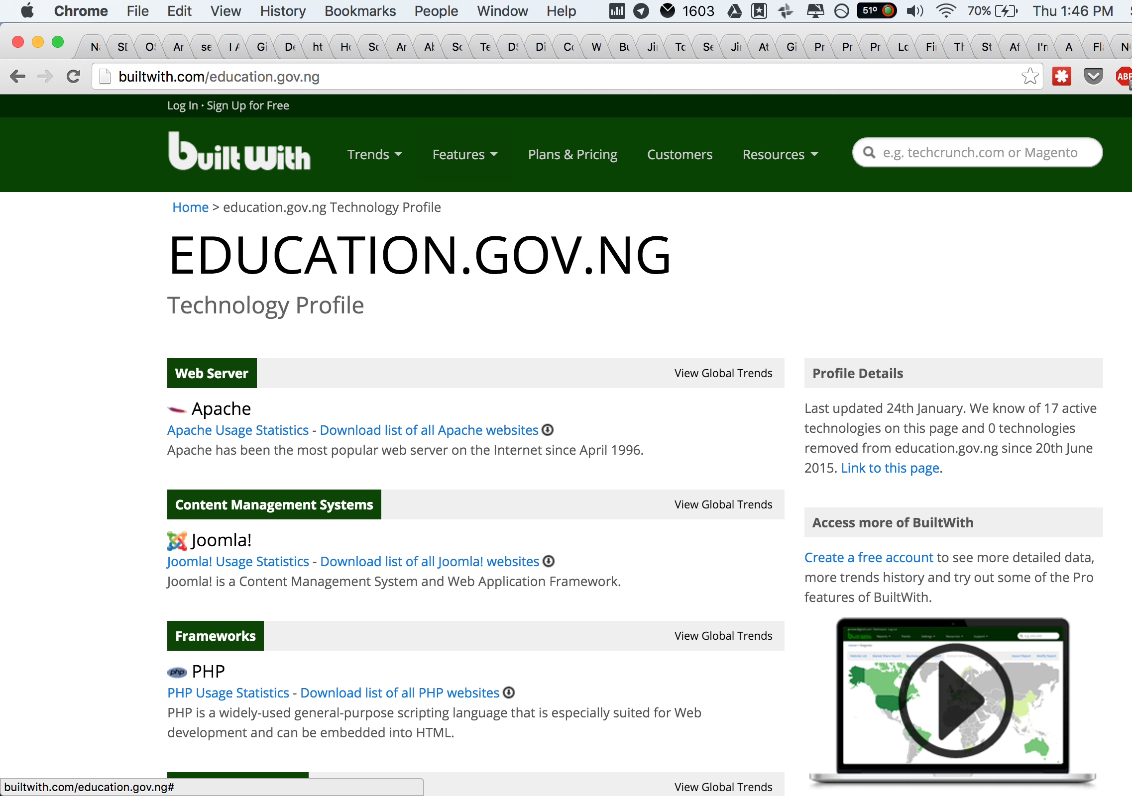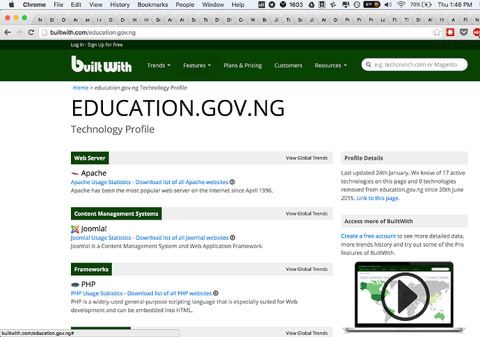 This website http://www.education.gov.ng/ that they intend to maintain is a Joomla website that was built and hosted by glaxybackbone