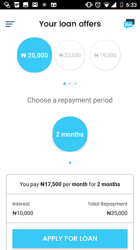 My own observation, given the offer (see screenshot) I was presented with, is that the rates may be too expensive (perhaps because of the lack of collateral) to encourage financial deepening and growth in the credit industry. Also, notice that the app totally ignores my 300k request.