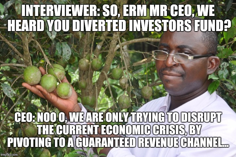 If you are not passionate about what you are doing, especially in Nigeria/Africa, there is an even higher likelihood of failing. And resorting to things this at the first roadblock